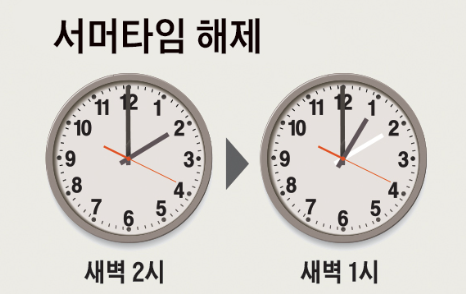 새벽 2시가 새벽 1시로 바뀌는 써머타임 해제가 되는 날이지요.